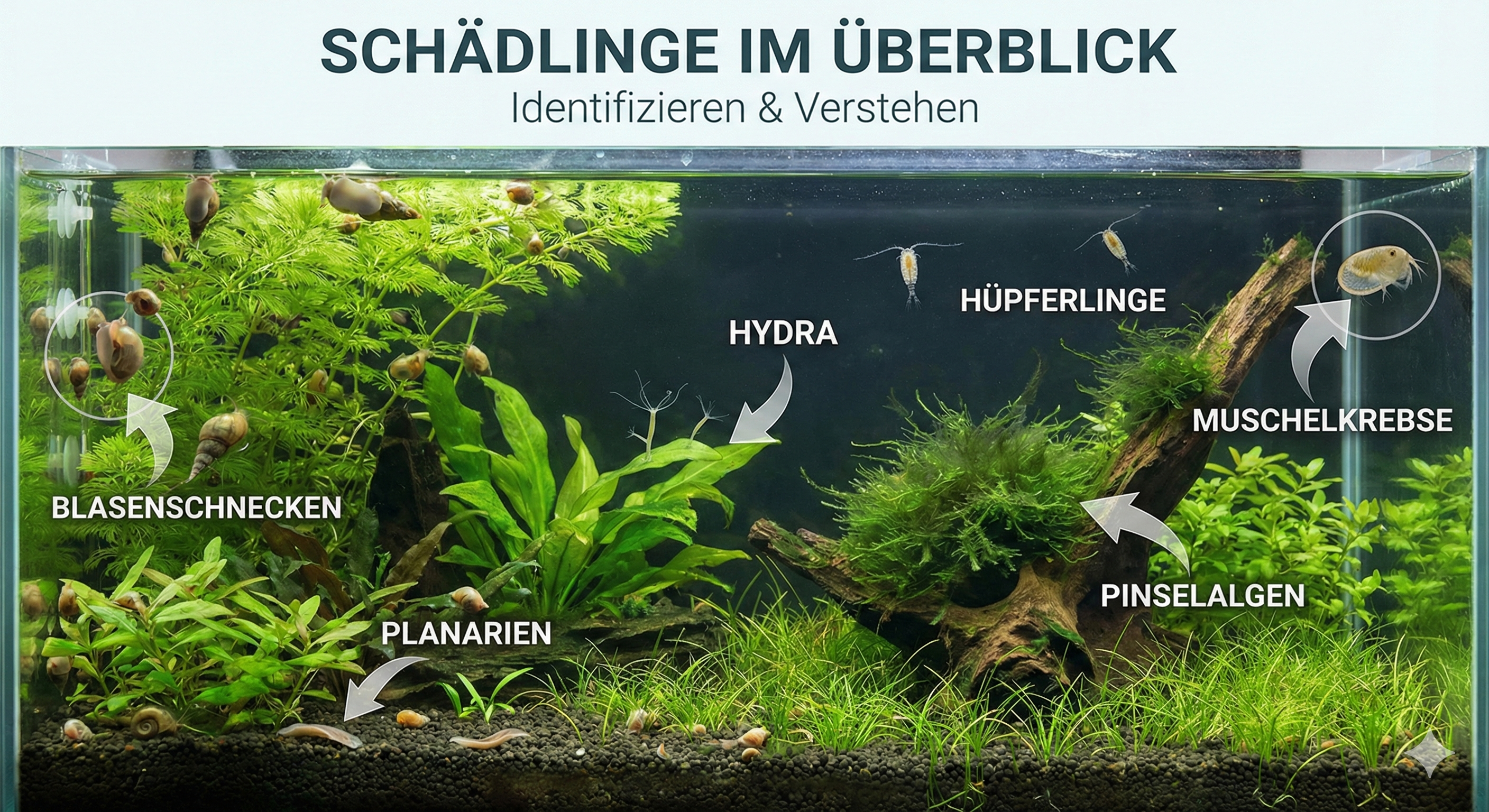 - Tipp: Reduziere die Fütterung, dann regelt sich die Population meist von selbst, da sie von vielen Fischen als Snack betrachtet werden.